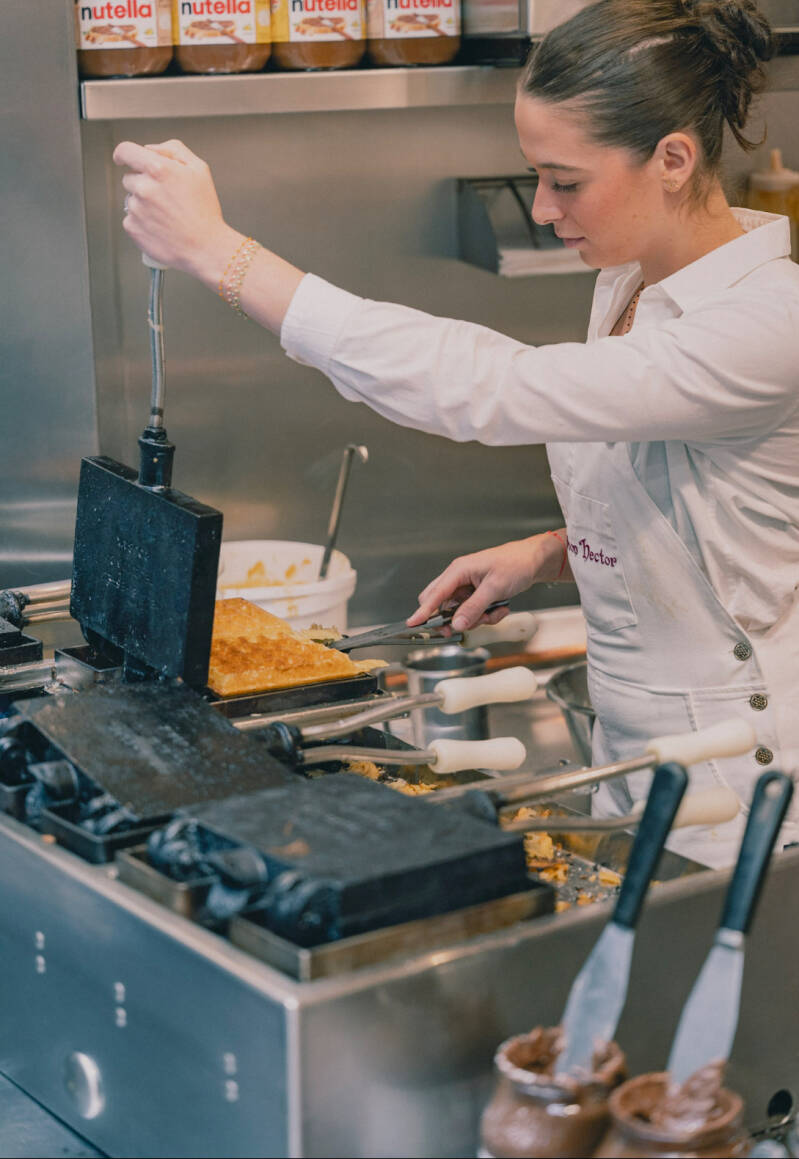 Gaufres cuites à la flamme sous vos yeux, crêpes tournées à la minute et beignets pétris sur place.
